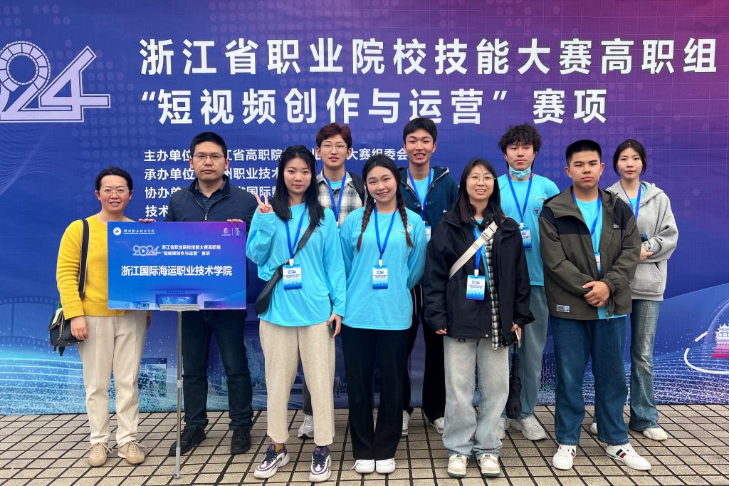 4月1日-2日,2024年浙江省高等职业教育技能大赛“短视频创作与运营”赛项在湖州举行,全省44所高职院校共88支代表队,352名选手同台竞技。我校由现代港口贸易学院郑奕楠、庄梦瑶、高翔、徐建鑫、霍嘉禾、施欣雨、陈钰轩、郑果8位同学组成的两支队伍,在陈颖燕、韩君两位老师的精心指导下,在众多选手中脱颖而出,分别获得二等奖和三等奖,实现了我校在该项赛的新突破。