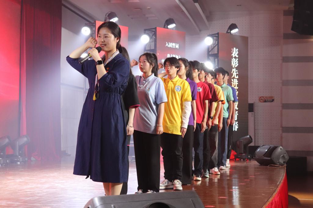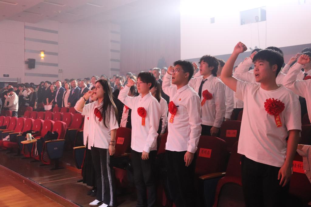 在开场舞蹈《百年誓言》中,大会拉开了帷幕。我校优秀青年学子跟着校团委副书记余娜娜重温入团誓词,再次坚定了自己的理想信念,明确了作为一名共青团员的责任和使命。