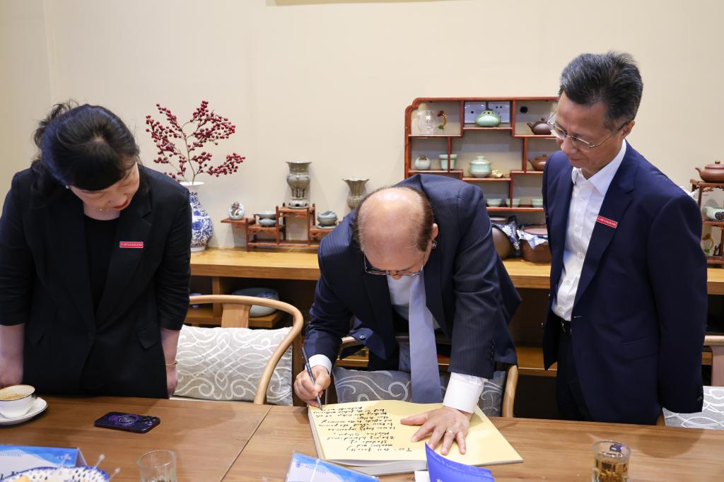 随后,林基泽先生来到海邮驿站与学校领导进行了亲切交流。吴中平校长对林基泽先生来访我校表示热烈欢迎,并介绍了我校的办学历史、办学特色、发展现状及近年来取得的办学成效等。期间,林基泽先生仔细询问了我校与世界知名航运企业的合作情况,培养的学生在航运业中的就业情况等,他对我校办学成果给予了高度肯定,充分认可我校为世界航运业输送了大批职业能力强、敬业精神好的优秀船员贡献了重要力量。