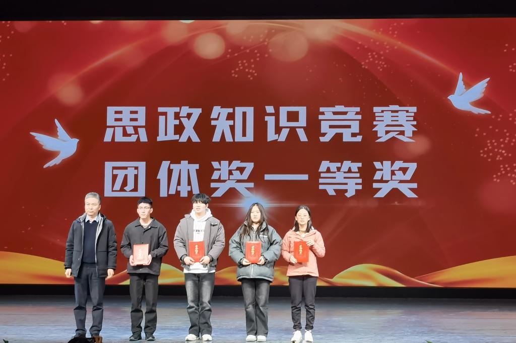 1月11日,第七届“卡尔·马克思杯”浙江省大学生理论知识竞赛决赛在浙江工商大学举行。经现场激烈角逐,由石油化工学院李子军、俞剑涛、陈果、钟翔、李茂、穆豪熙、王贵荣、汤云慧,现代港口贸易学院陈琼瑶、海洋装备工程学院叶诗琪10名同学组成的我校代表队从全省105所高校、55万余名参赛学生中脱颖而出,取得辉煌战绩,荣获专科组“思政知识竞赛”团体奖一等奖、个人赛2个一等奖、“大学生讲思政课”一等奖。