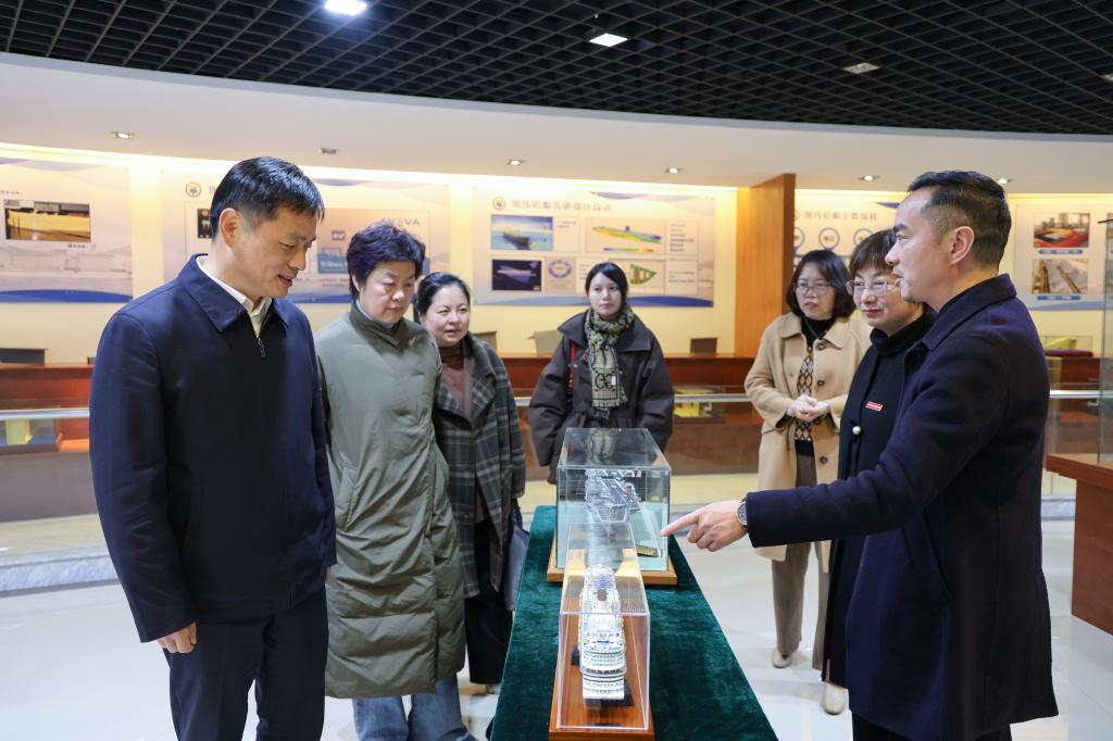 胡恒锁秘书长一行依次参观了校史馆、航海操纵模拟器、国家级现代航运虚拟仿真实训中心、轮机模拟器、船舶知识馆等教学场所,并亲身体验了我校自主研发的虚拟仿真教学系统。吴中平校长详细介绍了学校办学情况,重点汇报了在人才培养、“双高”建设、科技创新、教育改革和学科建设等方面取得的突出成绩。