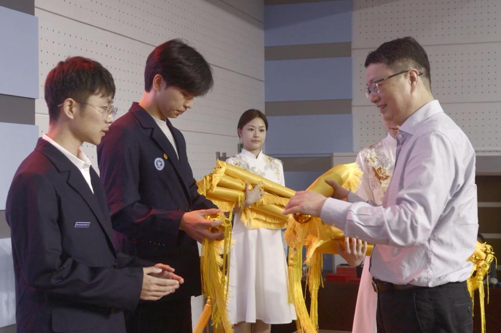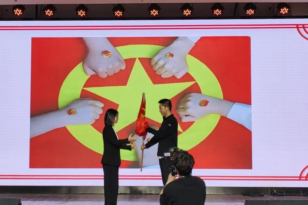 随后,退团代表赵怡琦将团旗传递给新任教工团支部书记王亚鹏,象征着使命与荣光的接力。