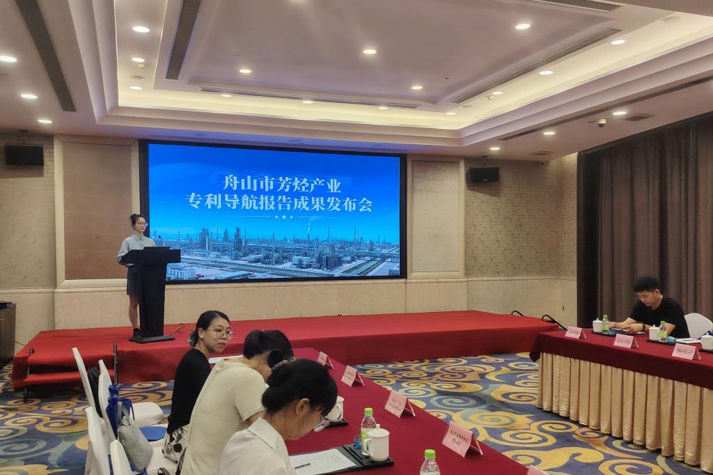 会上进行了芳烃产业专利导航项目成果发布,该导航项目对芳烃23大重要衍生品(聚酯/工程塑料/特种化学品)进行研究,通过检索全球及中国专利数据,分析技术生命周期与区域分布,结合SWOT模型评估舟山芳烃产业优劣势,提出了舟山市芳烃产业强链、补链、延链路径。同时,梳理了浙江省高校高价值芳烃类专利,引导舟山市相关企业与之匹配对接。