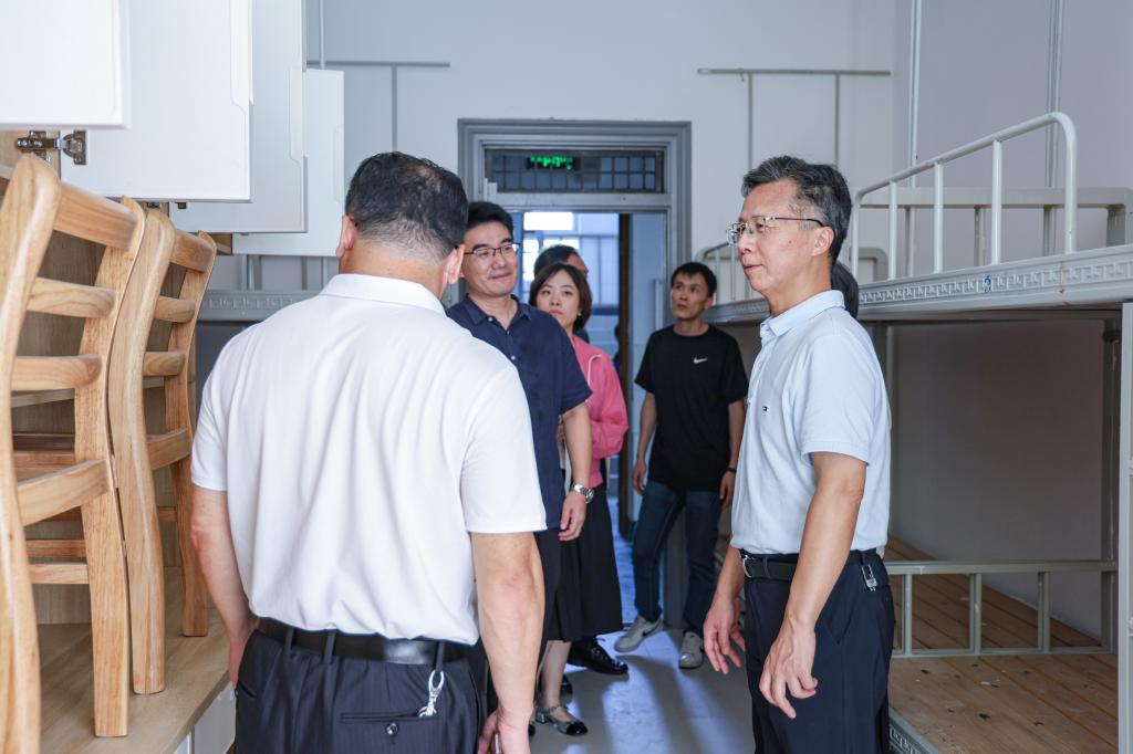 吴中平校长先后走访学生宿舍、商贸区、食堂、艇筏训练基地、教学楼等重点场所开展专项检查指导。在检查过程中,他聚焦学生住宿安全、食品卫生管理、实训教学保障、商贸服务规范及校园基础设施运行等核心方面,通过现场询问、实地察看等方式,详细了解开学筹备细节与安全保障措施落实情况,同时掌握校内在建工程建设进展。针对检查发现的问题,他当场提出整改意见,明确要求各责任单位压实工作责任,在规定时限内完成整改,切实筑牢校园安全防线。