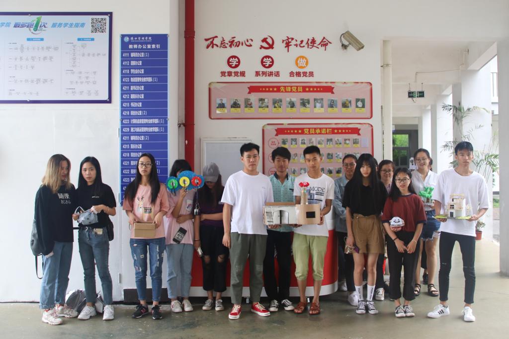 此次活动作品原材料全部来自生活中的废弃物品,同学们3-4人为一组,大家集思广益,脑洞大开,做出了创意满满的作品:有的用穿旧的牛仔裤重新剪裁做了一个崭新的帆布包,有的用矿泉水瓶做了花盆,有的用干树枝做了插花艺术品。经过前期评选,40余件手工作品入围决赛。决赛作品在教学楼展出,吸引了不少老师、同学们驻足观看。经过团委学生会认真评选,本次比赛评选出一等奖作品3件,二等奖作品5件,三等奖作品8件。