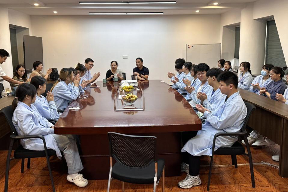 在公司赵丽燕主任、陈云主任的带领下,俞海平院长一行参观了实习生工作的实验检测室,了解日常工作和生活环境。在实习生座谈会上,实习同学们分别汇报了目前从事的工作内容、在公司的收获以及当前阶段的问题和困难,同学们纷纷表示,三个月的实习中都有所收获。针对实习期间相关问题以及生活中的困难所在,实习指导老师何定芬、傅赛红以及负责实习工作的公司人力资源负责人郑珊一一向同学们作出了耐心解答。