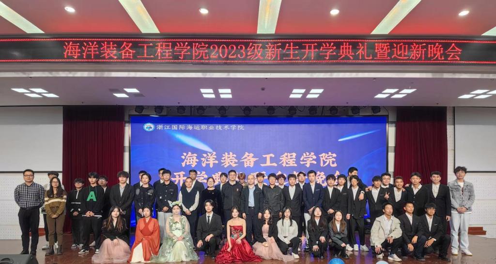 晚云拨弄,秋风习习,10月20日晚,海洋装备工程学院在图书馆报告厅举行了2023级新生开学典礼暨迎新晚会。学院党总支书记罗秀峰,学院党总支副书记於国元,副院长何琪、刘在良出席晚会,学院教师代表、新生班班主任和全体辅导员以及全体新生共同参加晚会。