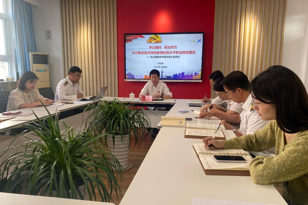 11月1日下午,校党委委员、纪委书记张谷燕为航海工程学院党总支轮机党支全体党员讲授了《牢记嘱托 担当作为——大力推动海洋特色鲜明的高水平职业院校建设》主题教育专题党课。