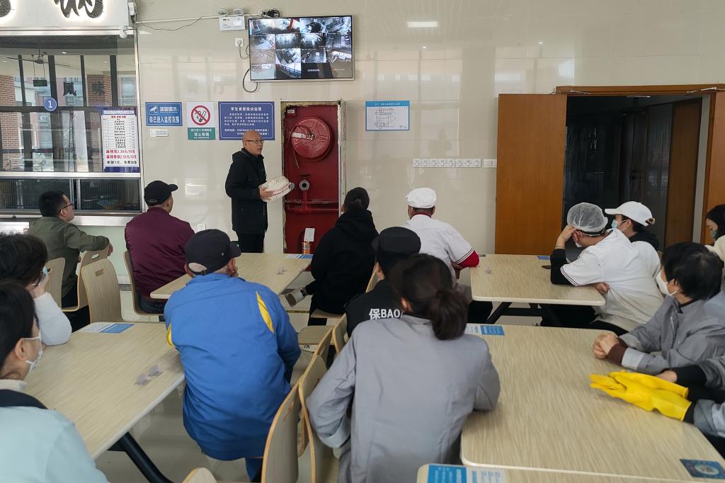 为推进平安校园建设,提高后勤从业人员应对突发火灾的处理能力,11月30日下午,石油化工学院邀请消防安保专家为岱山校区食堂、物业工作人员讲解了如何做好火情报告、疏散学生和灭火等工作。
