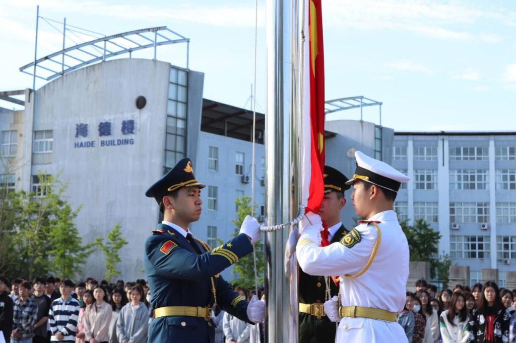 5月13日,学校在董浩云广场举行“站在国旗下”主题升旗仪式暨就业促进月、学风建设推进月启动仪式。本次活动由校党委学工部主办,各二级学院共同承办。校党委副书记孔志光、国际教育学院院长吴旭光、学工部副部长周燕、各二级学院党总支副书记及师生代表共同参加活动。活动由学工部部长马露瑶主持。