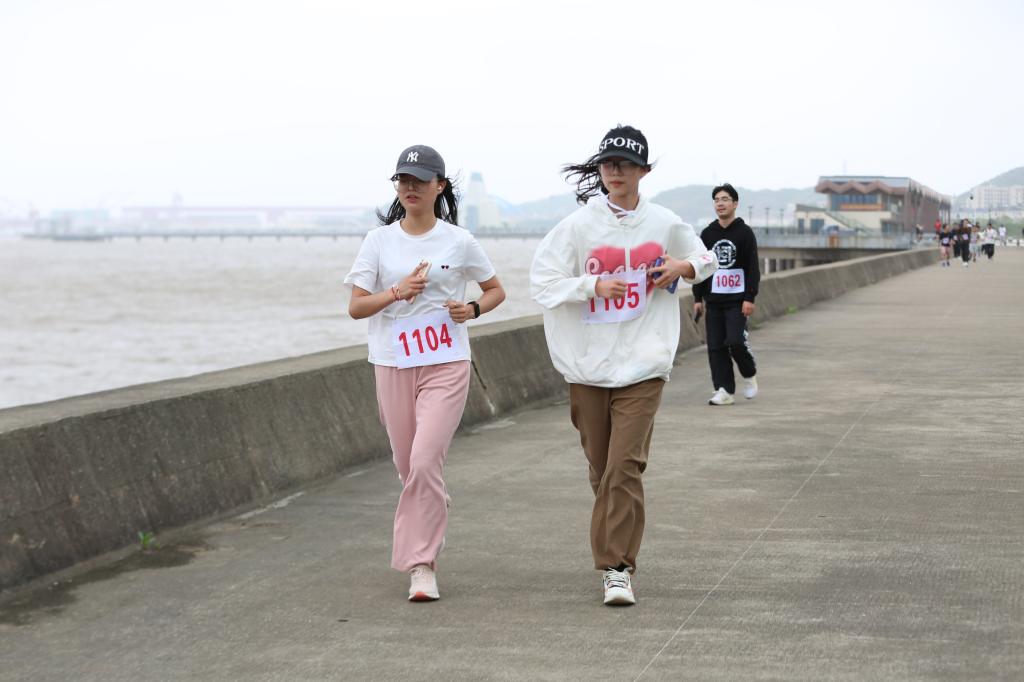 本次越野跑赛道为岱山县灯塔博物馆东侧海塘外,是一条集海瀚、滩美、礁奇、山秀为一体的赛道,全长约为五公里。为确保此次越野赛能够安全有序进行,学院在赛前多次实地勘查并调整行进路线,制定了详细的参赛规程和完善的安全预案,明确后勤保障、应急救护等志愿者分工。同时联系交警部门为各个赛段、各个拐点的学生安全保驾护航。