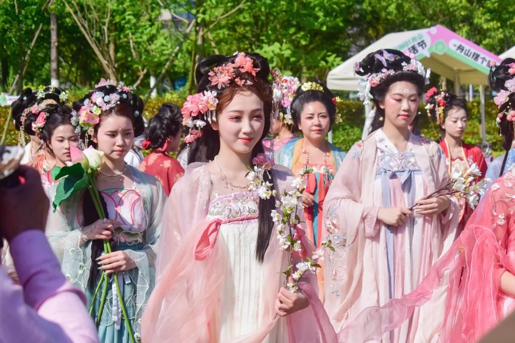 5月18日下午,舟山市的樱花公园内,花香四溢,人头攒动。由舟山市团市委主办、舟山市汉文化协会承办的2024年舟山市花朝节“花神”才艺比赛正在上演,吸引了众多市民和游客的目光。