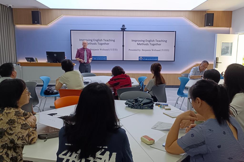 为进一步提升英语教学水平,9月11日,国际教育学院特邀美国外教Benjiamin Wellsand为英语教师举办了“如何共同促进英语教学”主题讲座。讲座由国际教育学院副院长颜天明主持,国际教育学院院长吴旭光和全体教师参加。