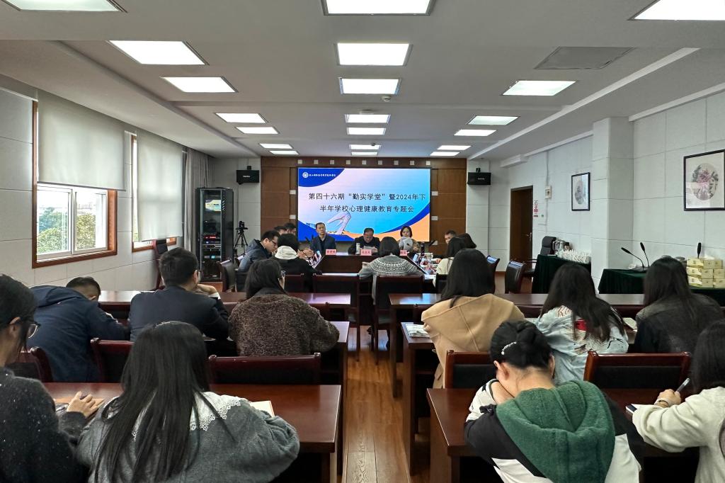 为进一步了解在校生的心理健康状况,准确把握和研判学生心理问题,进一步提高学生心理健康教育工作水平,11月21日,学工部举办了第四十六期“勤实学堂”暨2024年下半年学校心理健康教育专题会。校党委副书记孔志光、学生处相关负责人、各二级学院副书记、学校专兼职心理健康教育教师、全体辅导员及舟山二院特邀医生共同参会。