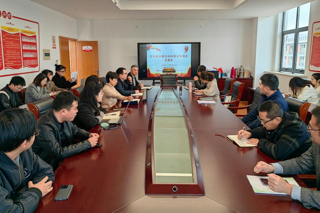 12月4日下午,石油化工学院在行政楼会议室召开党风廉政建设和校园安全稳定专题会,学院全体教职员工参加,会议由学院党总支书记童华年主持。