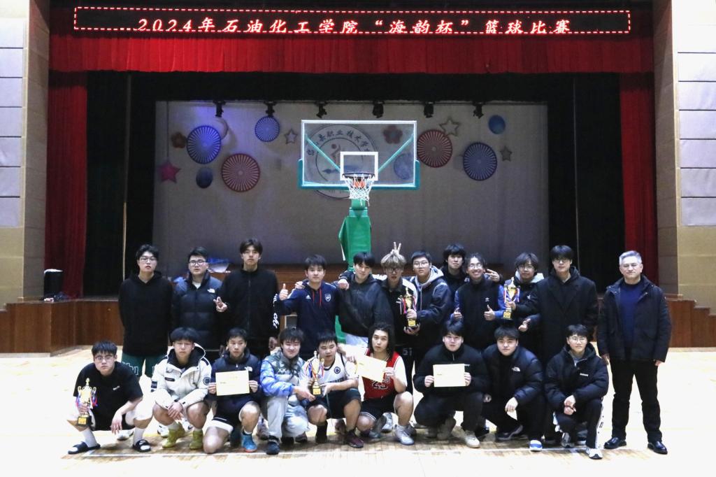 在最终的决赛中,2023级应用化工技术1班与2024级石油化工技术6班展开了激烈的对决。双方在攻防转换上表现得异常迅速,比赛场面紧张刺激。最终,2023级应用化工技术1班凭借卓越的团队合作和精准的投篮技巧,成功卫冕了“海韵杯”篮球赛的桂冠。赛后,学院党总支书记童华年以及分团委书记孙丹晔为获胜队伍颁发了奖杯和证书,强调篮球赛事不仅是一场体育竞技的较量,更是一次精神与意志的磨砺,同时也鼓励所有学生将比赛中展现出的奋斗精神转化为学习和生活中的动力,持续追求卓越。