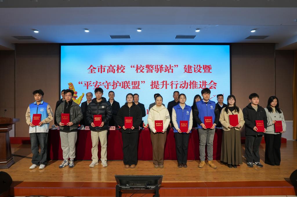 为贯彻落实全省高校“校警驿站”建设专项工作视频调度会精神,总结2021年以来全市高校“平安守护联盟”及今年6月份以来全市高校“校警驿站”建设情况,推进下步工作,12月26日下午,市公安局联合市政法委、市教育局召开全市高校“校警驿站”暨平安守护联盟提升行动推进会,我校党委委员、宣传部部长赵晖,安全保卫部部长陈增跃出席了会议。