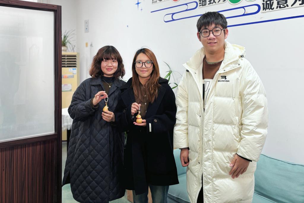制作完成后,学生们带着这些饱含心意的挂件走进办公室,亲手将它们送给女老师们。女老师们收到礼物后,脸上洋溢着惊喜与感动的笑容,纷纷为学生们的用心点赞。