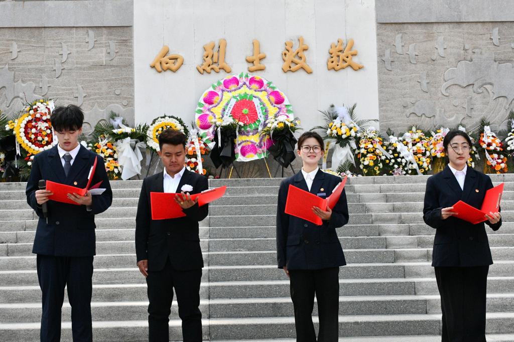 铿锵誓言在陵园上空久久回荡,传递着新时代师生传承红色基因、勇担历史使命的坚定信念。祭扫仪式结束后,师生们有序瞻仰烈士墓碑,并参观革命烈士纪念馆。一幅幅历史图片、一件件珍贵文物,让师生们深刻感受到革命年代的烽火岁月与先烈们舍生取义的崇高品格。