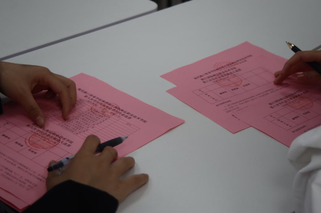 张肖肖同学代表上届主席团成员,对上一年度团委、学生会工作作了简单总结。她肯定了学生会和团委在过去一年中取得的成绩,并对新一届的代表们寄予厚望,鼓励他们继续发扬团结协作的精神,为学院的繁荣发展贡献力量。随后,大会进入了紧张而有序的选举环节。