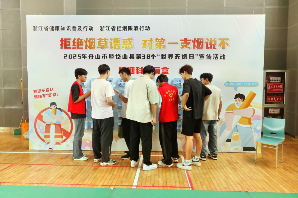 体艺馆现场,志愿者向同学们进行控烟科普讲解,舟山医院医生在健康咨询处为在校师生提供戒烟咨询和健康建议,师生络绎不绝。