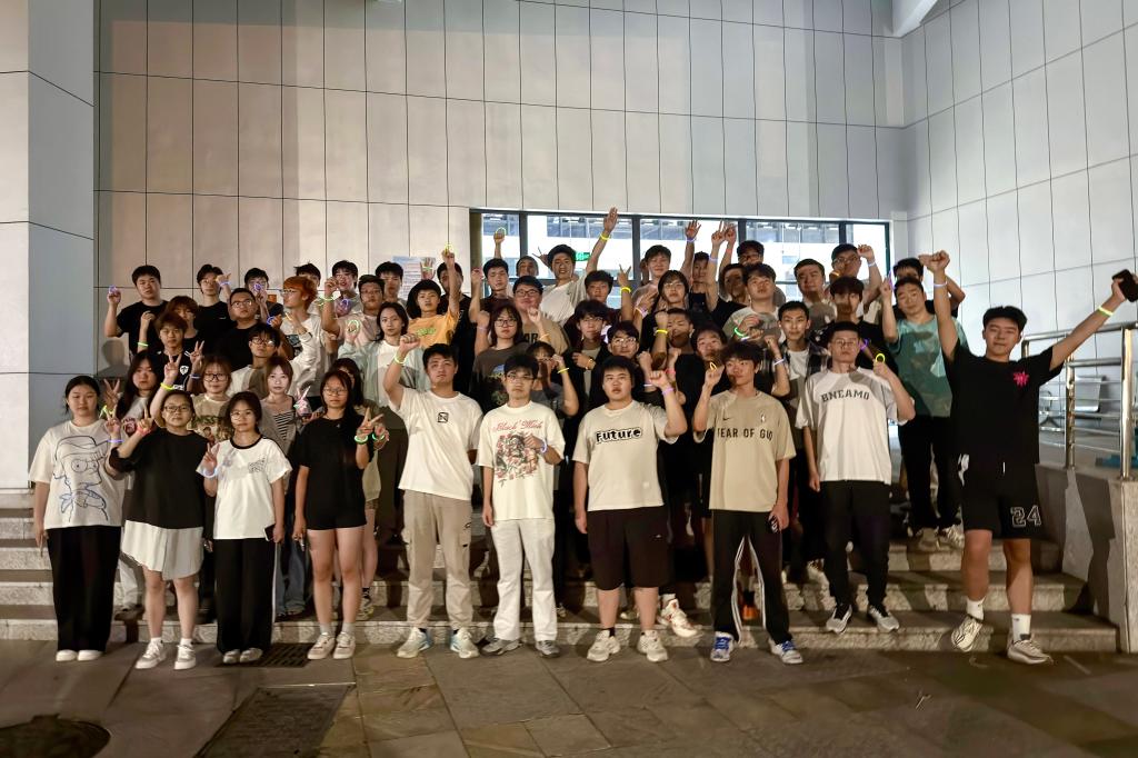 夜幕降临,当晚七点,活动正式开始。随着节奏感十足的音乐声响起,同学们手戴荧光棒,迈开矫健的步伐,沿着田径场奔跑起来。夜色中,荧光棒闪烁生辉,同学们奔跑的身影与闪烁的光芒交织在一起,形成了一条条灵动飘逸的光带,宛如夜空中流动的星河,将原本静谧的跑道装点得如梦如幻。