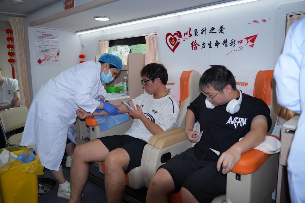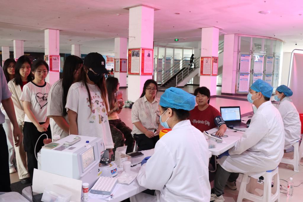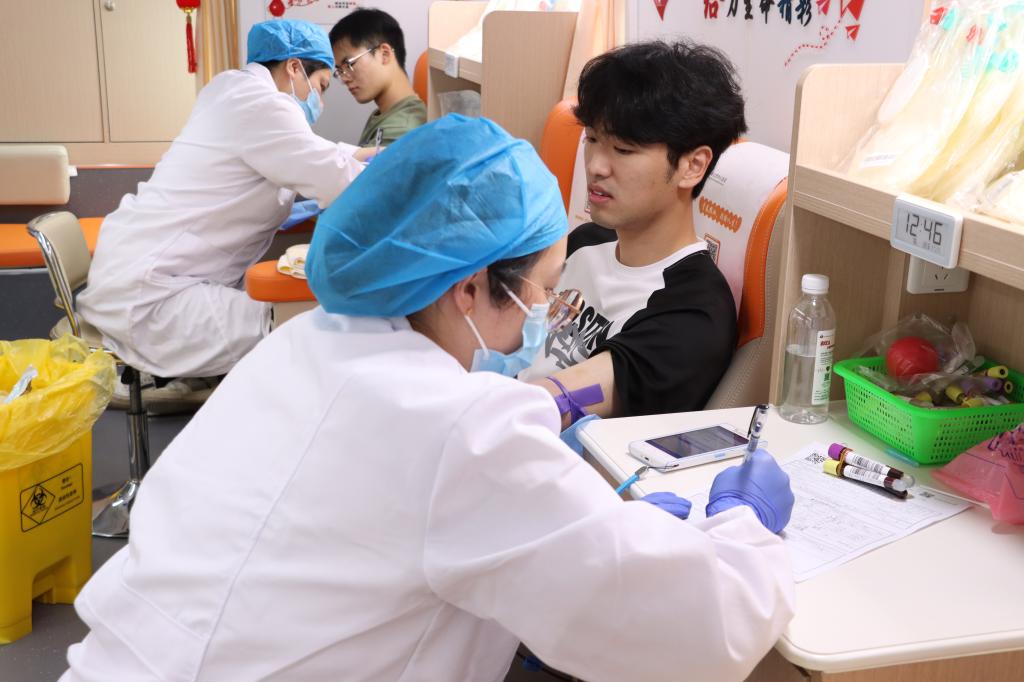 活动现场秩序井然,工作人员耐心引导。填表区,同学们认真填写个人信息;体检区外,大家有序排队,完成血压测量等检查。进入献血区,采血护士耐心讲解流程与注意事项,严格执行消毒、扎针、采血等规范操作。对于初次献血的同学,工作人员也给予贴心鼓励与指导。