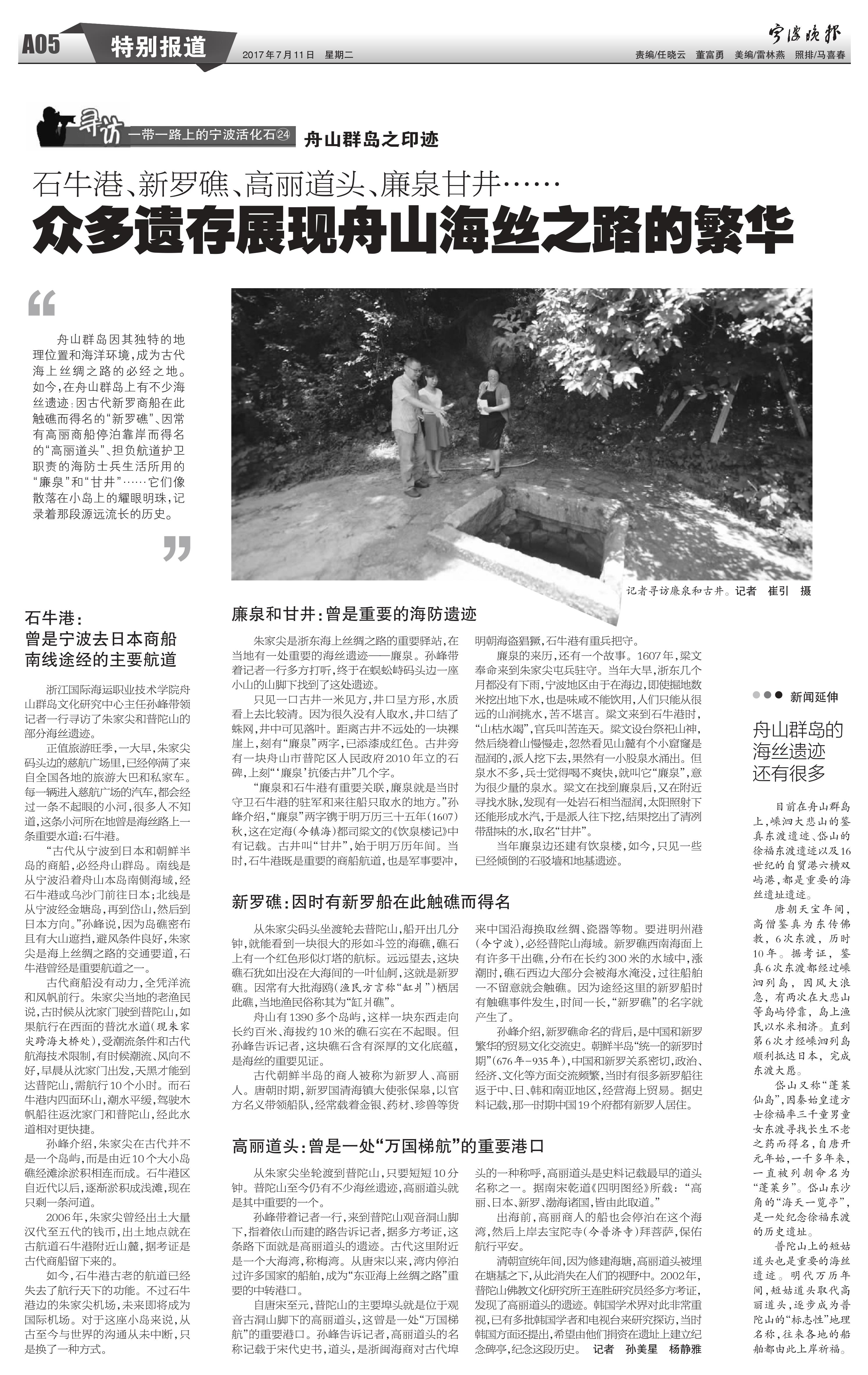 《宁波晚报》:寻访一带一路上的宁波活化石24舟山群岛之印迹