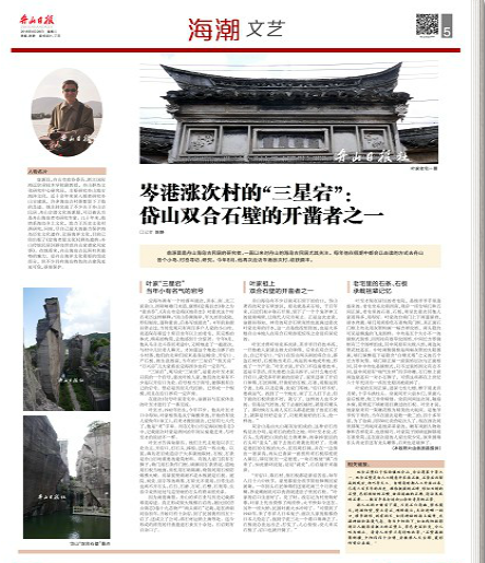 《中国海洋文化在线》/《舟山晚报》:岑港涨次村的“三星宕”:岱山双合石壁的开凿者之一