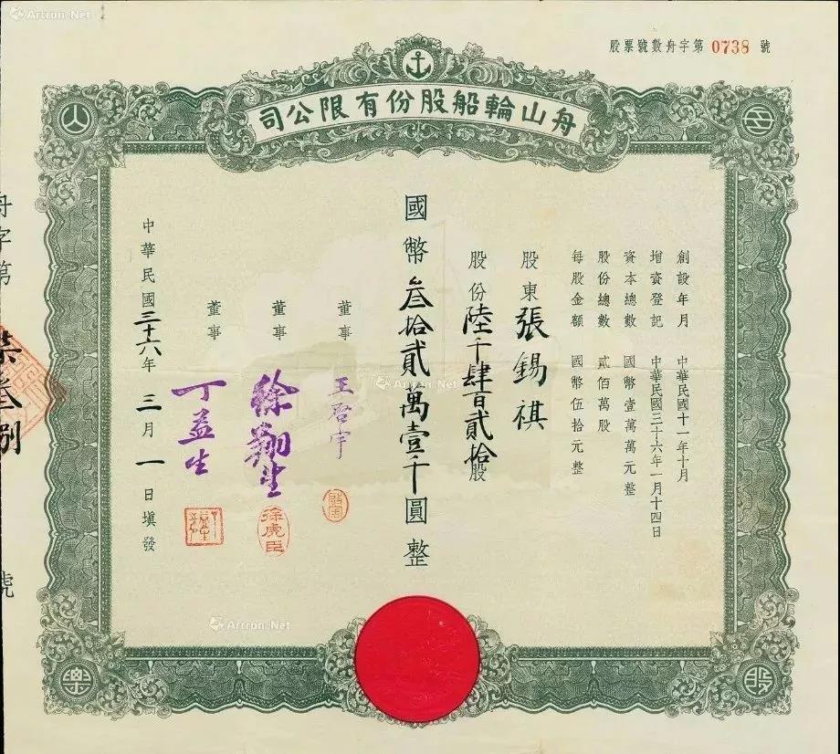 这条“舟山号”轮船,隶属于我们舟山旅沪商绅所设立的舟山轮船公司。民国十一年(1922年),舟山旅沪巨商朱葆三联合同乡刘鸿生、王启宇、许廷佐等人集资32万元,在上海发起创办舟山轮船公司,址设上海南市十六铺,购800吨级“舟山轮”,该船由上海瑞荣船厂建造,当年8月23日首航,开辟上海—定海—穿山—海门(今椒江)航线。该轮“机器之坚固,装饰之美观为定沪航线客轮之最”,这条“舟山”的运行,使得上海与定海之间的交通更加方便,来往行旅更加舒畅。