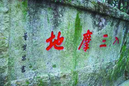 去过普陀山的人肯定记得,在妙庄严路口有一处“入三摩地”石刻,这是明代著名书画家、文学家董其昌留下的墨宝。