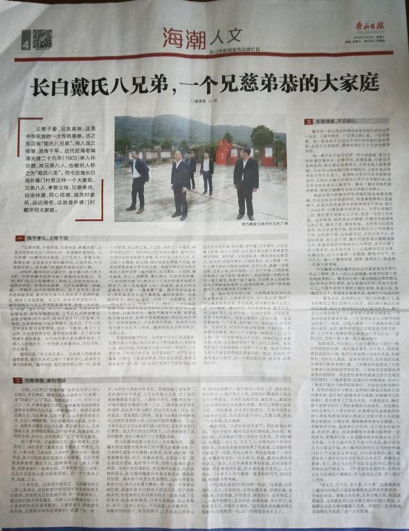 《舟山日报》:长白戴氏八兄弟,一个兄慈弟恭的大家庭