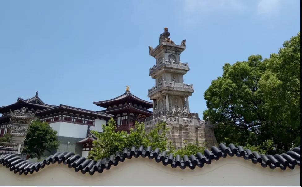 照片的背影是普陀山前寺的永寿桥与多宝塔,