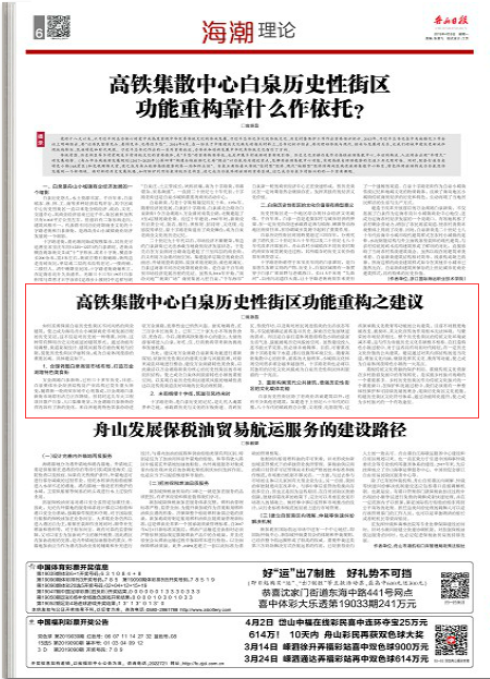 《舟山日报》:高铁集散中心白泉历史性街区功能重构之建议