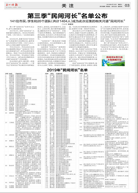 第三季“民间河长”名单今天公布,参与人数创新高。