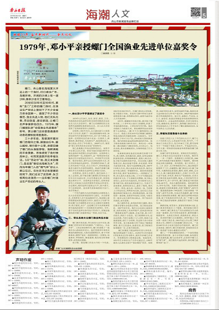 《舟山日报》:1979年,邓小平亲授螺门全国渔业先进单位嘉奖