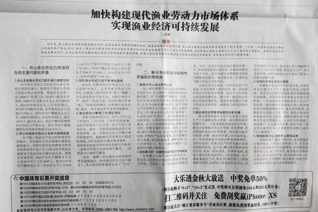 《舟山日报》:加快构建现代渔业劳动力市场体系 实现渔业经济可持续发展