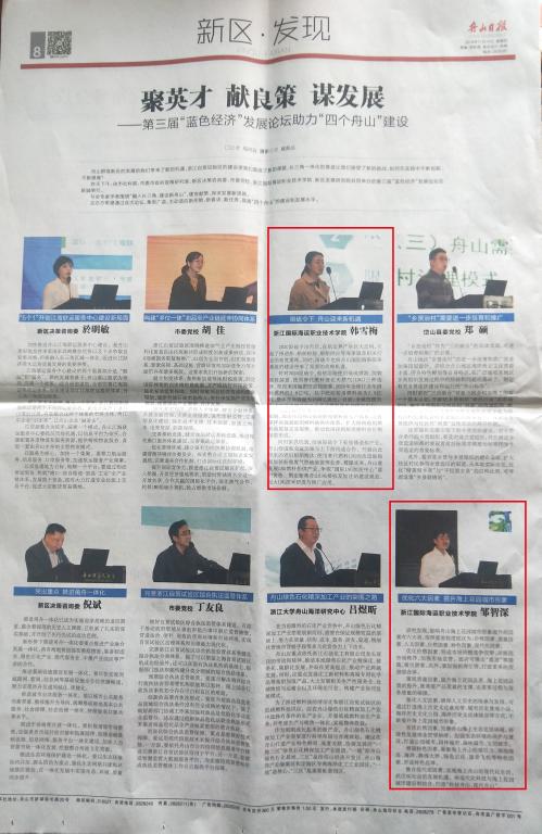 《舟山日报》:聚英才 献良策 谋发展 ——第三届“蓝色经济”发展论坛助力“四个舟山”建设