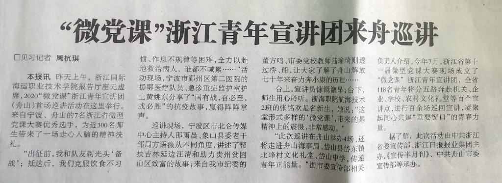 《舟山日报》:“微党课”浙江青年宣讲团来舟巡讲