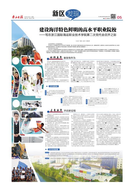 浙海职院提出,未来五年,学校将努力把学校建设成为治理体系科学完善,人才培养质量全面提升,社会服务水平大幅提高,师资队伍结构持续优化,海洋特色鲜明的高水平职业院校。