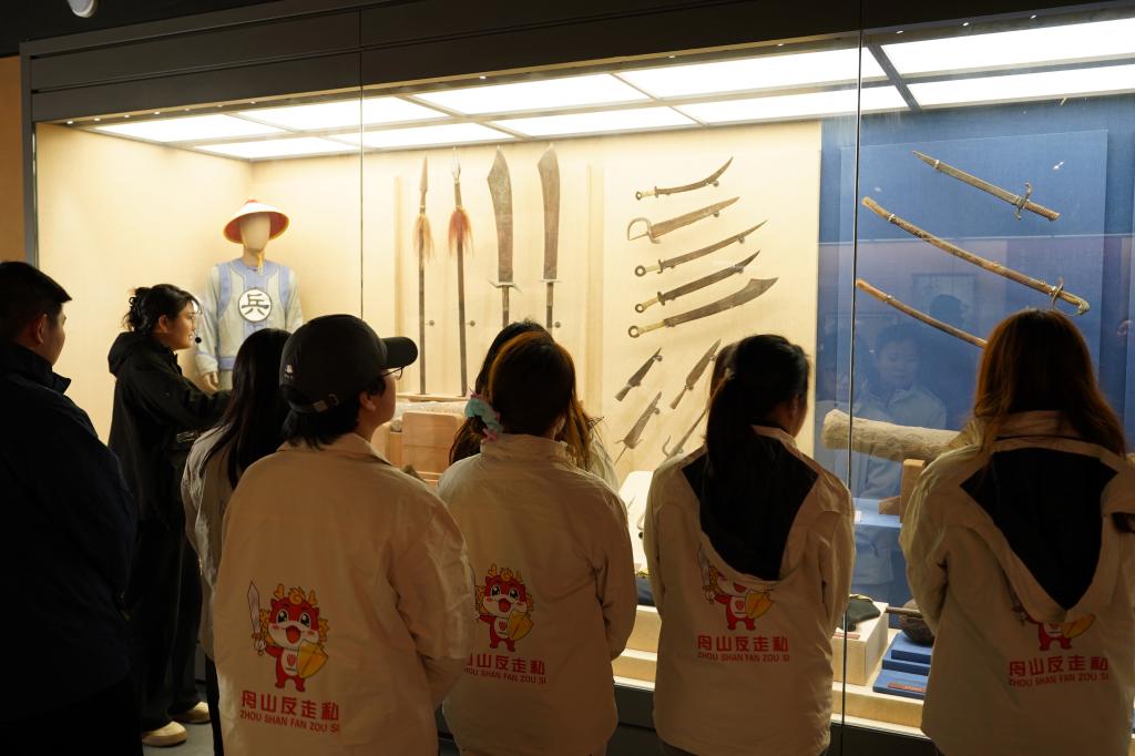 学子们以“移动课堂”形式深度探访舟山鸦片战争纪念馆、东岠岛反走私宣传阵地、沈家门码头和普陀博物馆、金塘解放史陈列馆和平倭碑等地,实地学习了解近代反走私斗争历史和先辈们的英雄事迹。这种沉浸式学习让年轻一代真切触摸到走私对国家经济安全、民生福祉的深层危害,更激发出守护国门的使命感。