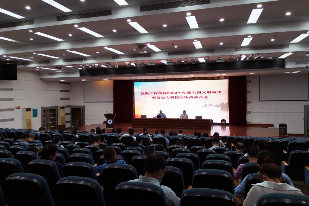 5月28日下午,航海工程学院在图书馆4楼报告厅召开了创建全国文明城市和省级文明校园决战动员会。航海工程学院全体教职工和行政班子成员参加会议。