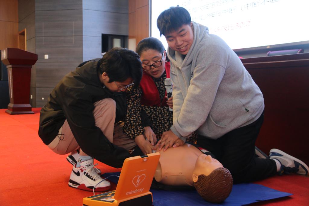 培训中,赛事组委会为志愿者们介绍了半程马拉松的赛事概况,让志愿者进一步了解赛事信息,熟悉赛道及具体岗位工作内容。特别邀请了浙江省红十字会的医护人员与石油化工学院“启航”救护队一起为医疗志愿者们讲解心肺复苏(CPR)要点,介绍了自动体外除颤仪(AED)的使用方法,还现场教学展示了一些常见的包扎方式。