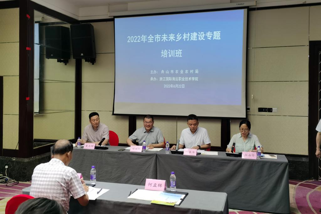 为贯彻落实全省共同富裕现代化基本单元建设推进会精神,高水平推进我市未来乡村建设,全力打造共同富裕大场景下的未来乡村海岛样板,由舟山市农业农村局主办、舟山市乡村振兴学院承办的2022 年全市未来乡村建设专题培训班在新城顺利开班。浙江省现代化研究院副院长项晓晖、市农业农村局副局长叶激华、市乡村振兴学院执行副院长夏志刚与来自县区、乡镇、乡村等48名负责人共同参加了开班仪式。仪式由市农业农村局社会事业促进处处长余海芳主持。