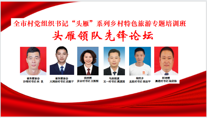 在8月18日刚刚结束的全市村党组织书记“头雁”系列乡村特色旅游专题培训班“头雁领队”先锋论坛上,乡村民宿经济发展较好的六位学员代表围绕如何发展高质量特色乡村旅游这个命题进行交流,共同探讨特色乡村旅游高质量发展之路。论坛上,学员们对本村特色乡村旅游发展现状作出分析,列成绩、摆优势,也阐述了发展过程中存在的问题,并结合本次培训所学提出后续发展设想,充分交流了意见,深化了对特色旅游乡村高质量发展相关问题的认识,培训效果得到进一步提升。至此,2023年舟山市村党组织书记“头雁”系列专题五期培训圆满结束。