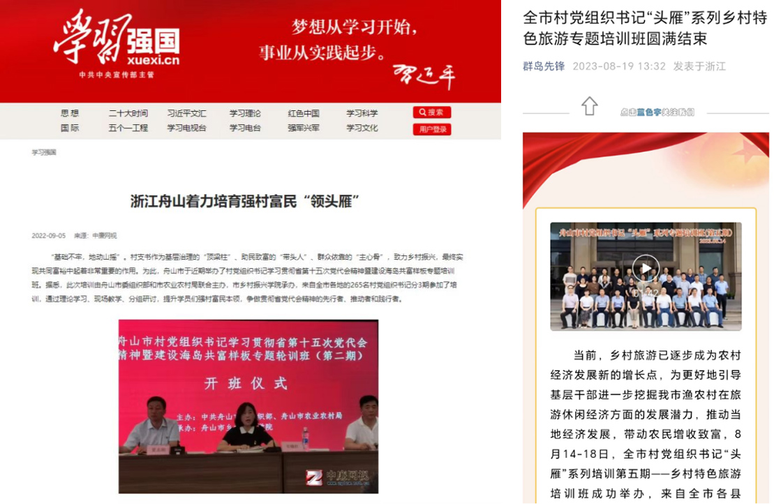两年来,舟山市乡村振兴学院针对全市村党组织书记分阶段开展轮训与系列专题培训。通过开展“比”理论素养、“学”解难本领、“赶”身边先进、“超”标杆样板,切实增强了带领群众实现村强民富的能力和本领,相关做法多次在学习强国、中国网、浙江省农业农村厅网站、舟山市委组织部“群岛先锋”党建平台等各级官方媒体发布报道,扩大了宣传的范围和影响力,将培训的成果和重要性传递给更广泛的群体。
